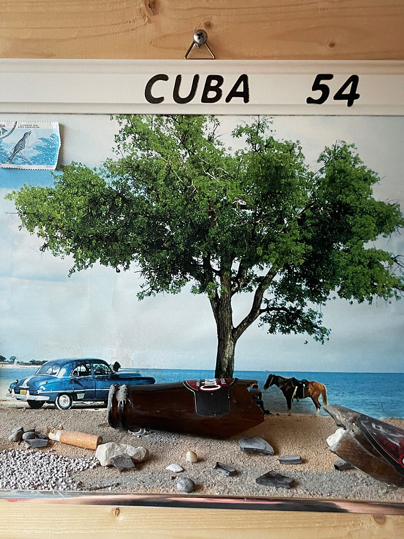 Sie sind mit Originalteilen wie Emblemen, Autokennzeichen, Schlüsseln, Anhängern u.ä. verziert.